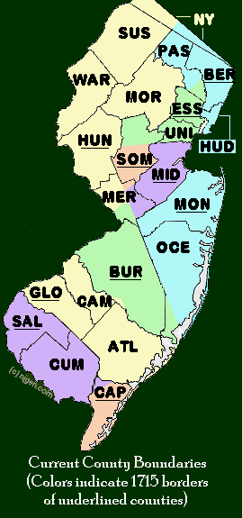 1714: Hunterdon County is formed from Burlington, consisting of the current lands of Hunterdon, Morris, Sussex, Warren, and part of Mercer County